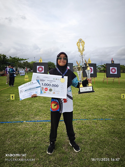 Yogyakarta — Lomba Panahan “Panah MU Archery Tournament” menjadi panggung pembuktian bagi atlet muda berbakat, Nadia Salsabila, yang sukses membawa pulang gelar juara 1 setelah tampil gemilang dalam seluruh rangkaian pertandingan di UAD (Universitas Ahmad Dahlan) Yogyakarta, pada tanggal 15-16 November 2025.